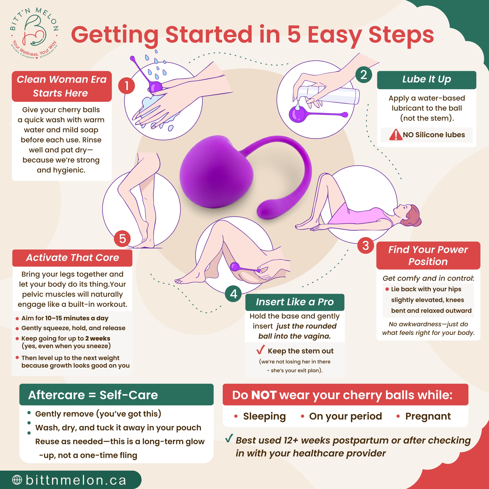 Designed for women experiencing bladder leaks, pelvic floor weakness, prolapse concerns, or those simply wanting to enhance sexual health, the graduated weights (30g to 110g) allow for customizable training at any comfort level. Sleek, discreet, and easy to use, this kit transforms pelvic health from something you manage into something you master. Use with a water based lube for easy insertion and removal. Use for 15mins – daily and then move to the next weighted ball.